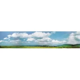 Fond de décor Faller 180511 représentant le paysage Forêt-Noire / Baar. Ce décor photo en 4 éléments permet de prolonger le fond de décor de référence 180514 vers la droite ou vers la gauche. Dimensions : 3880 x 650 mm.