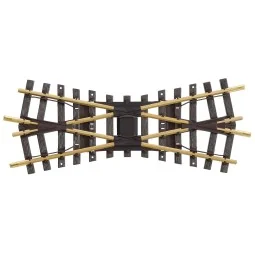 Croisement de voie LGB réf. 13200 à l’échelle G (1/22,5), avec éléments droits de 375 mm et angle de croisement de 22,5°. Pour certains montages, une adaptation des éléments de voie raccordés peut être nécessaire.