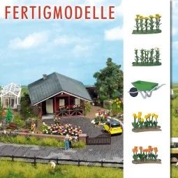 Tulipes et marguerites Busch 1231 pour le décor de réseau ferroviaire HO. Cet assortiment est destiné à compléter l’environnement d’une maquette avec un rendu floral soigné.