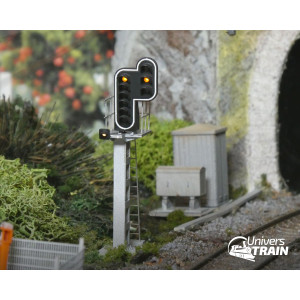 Signal SNCF type H, équipé de 10 feux (rouge/blanc/vert/rouge/jaune/double jaune/œilleton) sur mat léger, MAFEN 913217